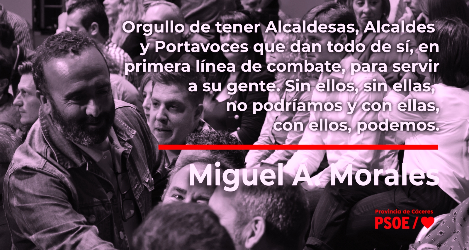 Como Secretario General de un partido que ha sufrido muertes y persecución, que ha dado lo mejor de sí para la transformación de España y que le toca lidiar con esta pandemia, expreso mi reconocimiento y orgullo de tener Alcaldesas, Alcaldes y Portavoces que dan todo de sí, en primera línea de combate, para servir a su gente. Sin ellos, sin ellas, no podríamos y, con ellas, con ellas, podemos.