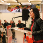 Abrió el acto Soledad Tovar pidiendo que nadie agache la cabeza y que vayamos a votar el próximo domingo porque Extremadura no resistirá más recortes y más teatro de María Guardiola y con quien volvería a pactar a pesar de lo que sintamos las mujeres de esta tierra.»