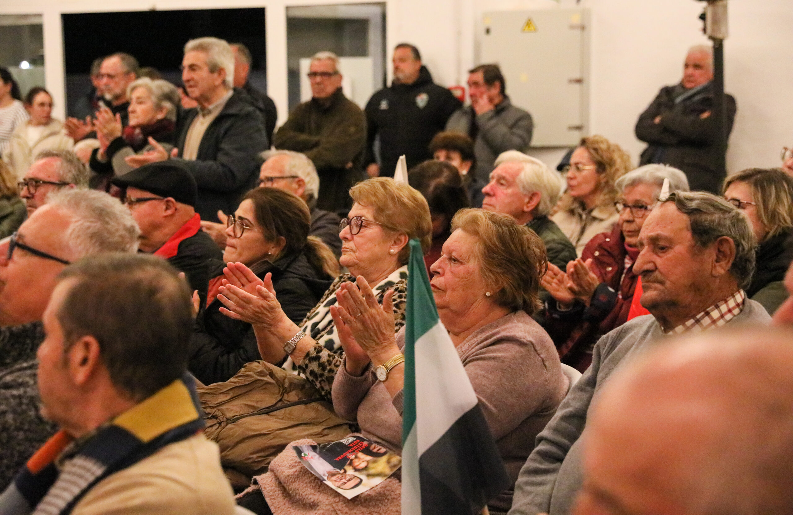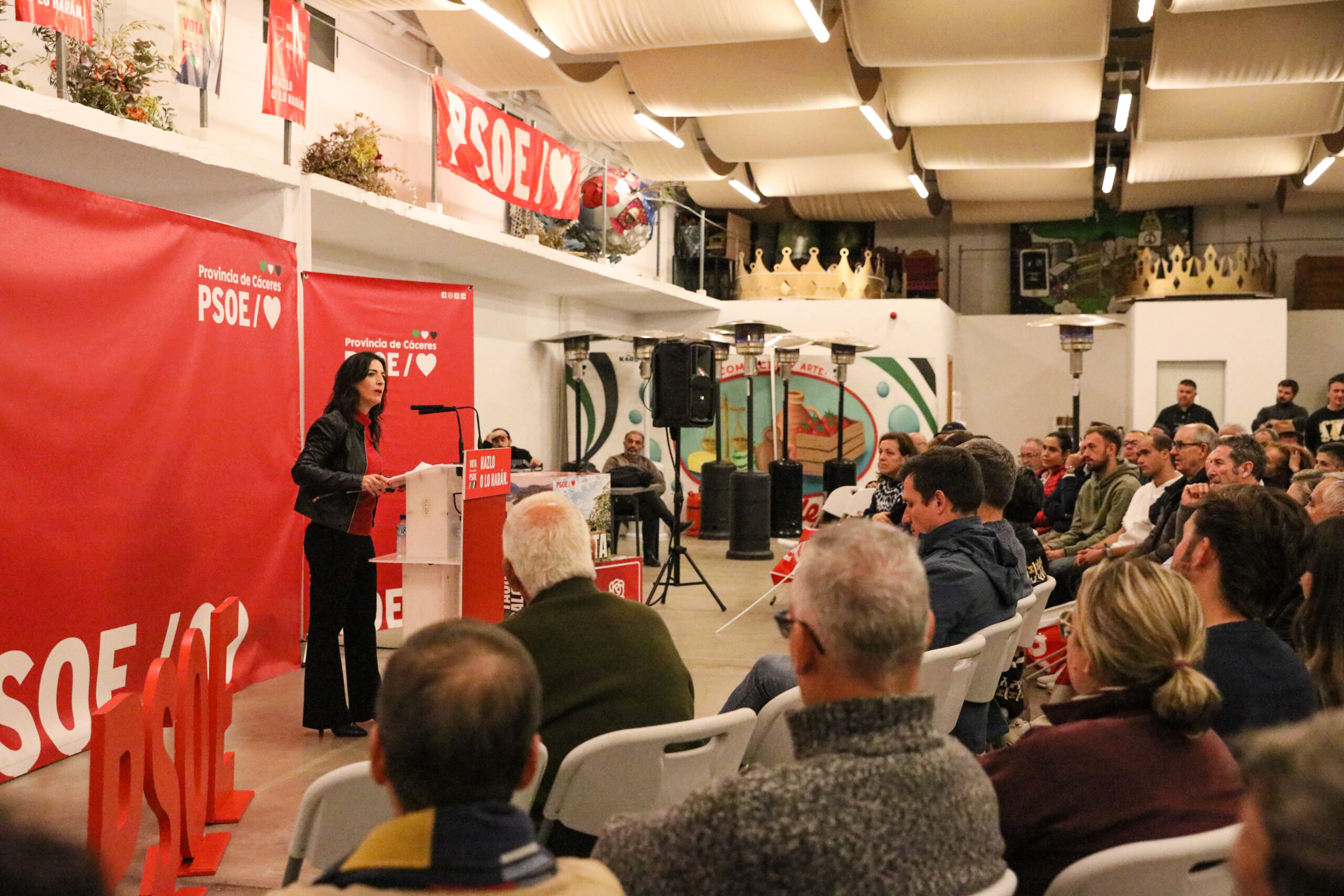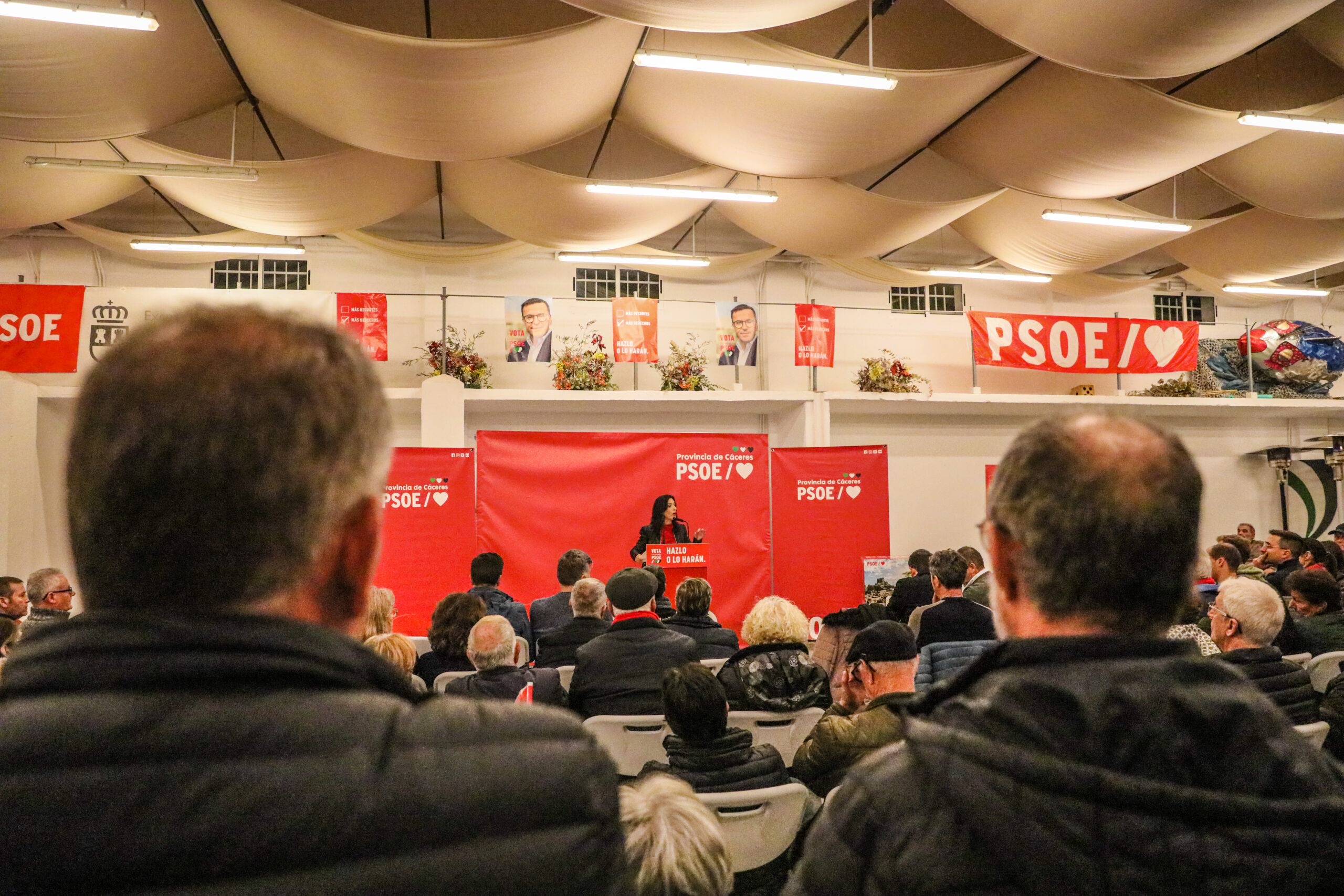 Abrió el acto Soledad Tovar pidiendo que nadie agache la cabeza y que vayamos a votar el próximo domingo porque Extremadura no resistirá más recortes y más teatro de María Guardiola y con quien volvería a pactar a pesar de lo que sintamos las mujeres de esta tierra.»
