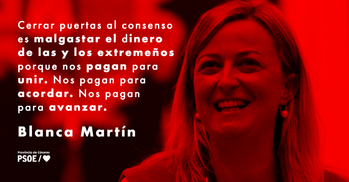 De esta manera y aunque la matemática parlamentaria indique que al PSOE no le hace falta negociar nada, el talante de nuestro Presidente, su mano tendida y su convicción y defensa del consenso para construir una Extremadura más fuerte, es un mensaje claro para toda la ciudadanía: juntas, juntos, somos imparables. Esa es nuestra verdadera cita con el destino que estamos escribiendo.