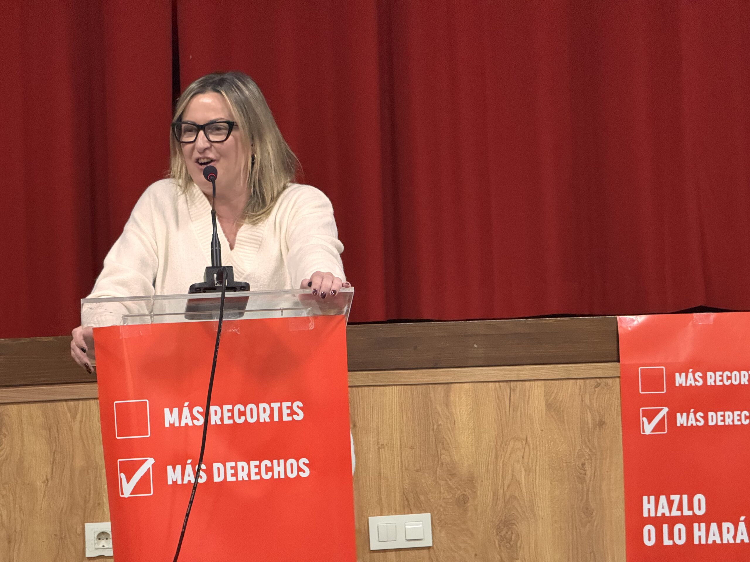 «Desde que tengo memoria, las encuestas nunca dicen que el PSOE gana las elecciones, incluso con Floriano. Las encuestas son suyas, hechas por sus empresas y predican sus intereses. Lo que nunca cambia, tampoco, es que cada vez que gobiernan, recortan, cada vez que gobiernan, lo sufrimos en cada pueblo, en cada centro de salud», siguió Martín.