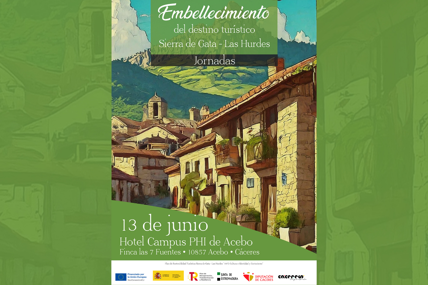 El próximo jueves 13 de junio, la localidad de Acebo (Cáceres) será el escenario de una Jornada sobre el Embellecimiento de Destinos Turísticos que reunirá a técnicos, especialistas, entidades públicas y vecinos para abordar esta temática desde diferentes puntos de vista, analizando casos de éxito de diversos proyectos puestos en marcha en la provincia y entornos rurales de otras localidades españolas y portuguesas.