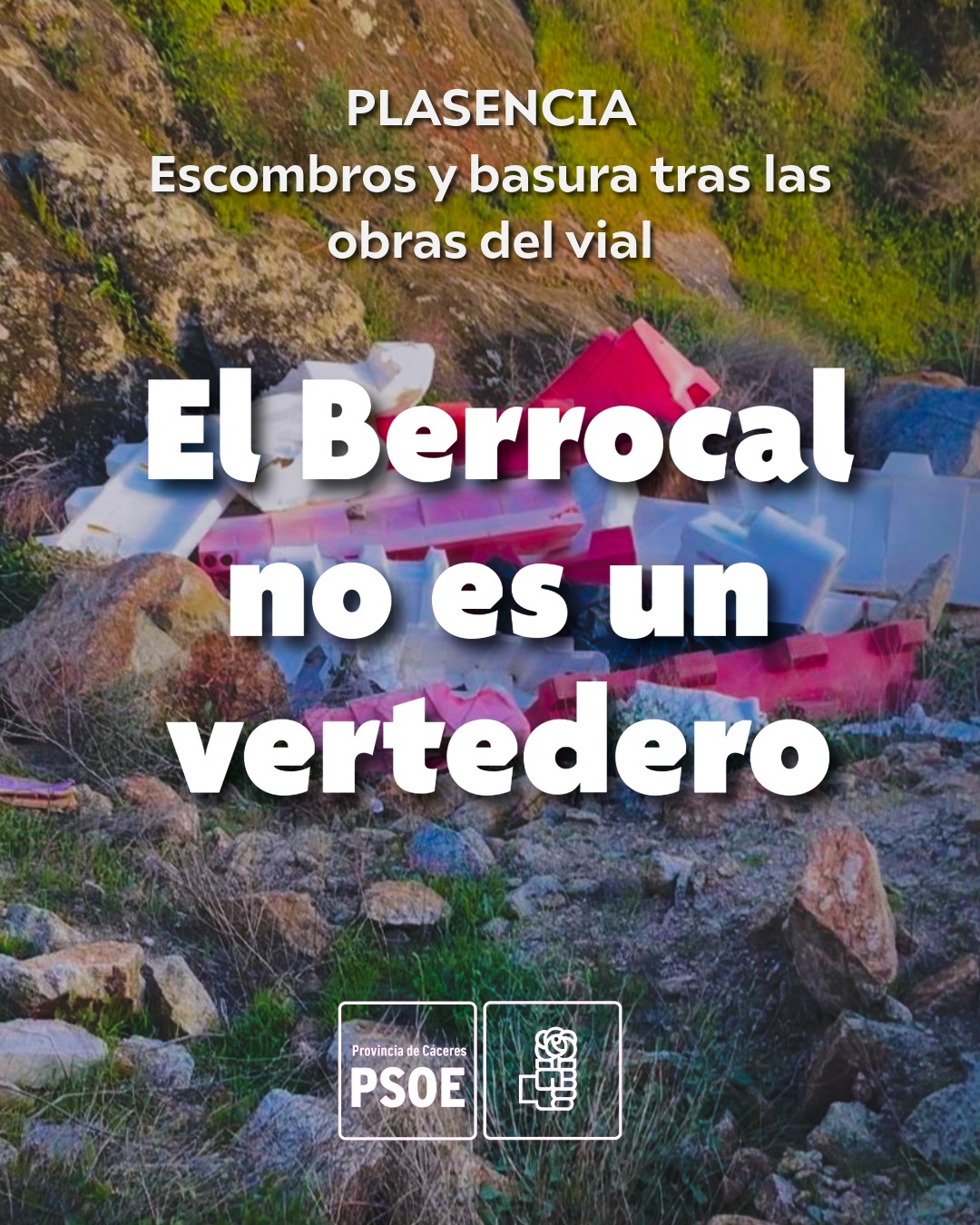 El Grupo Municipal Socialista de Plasencia, junto a vecinos y colectivos locales, ha denunciado públicamente el estado de degradación y abandono que presenta el entorno natural de El Berrocal y la zona de La Serrana tras la finalización de las obras del nuevo vial. Desde el PSOE califican la situación como un auténtico “atentado ecológico” contra uno de los espacios naturales más emblemáticos del municipio.