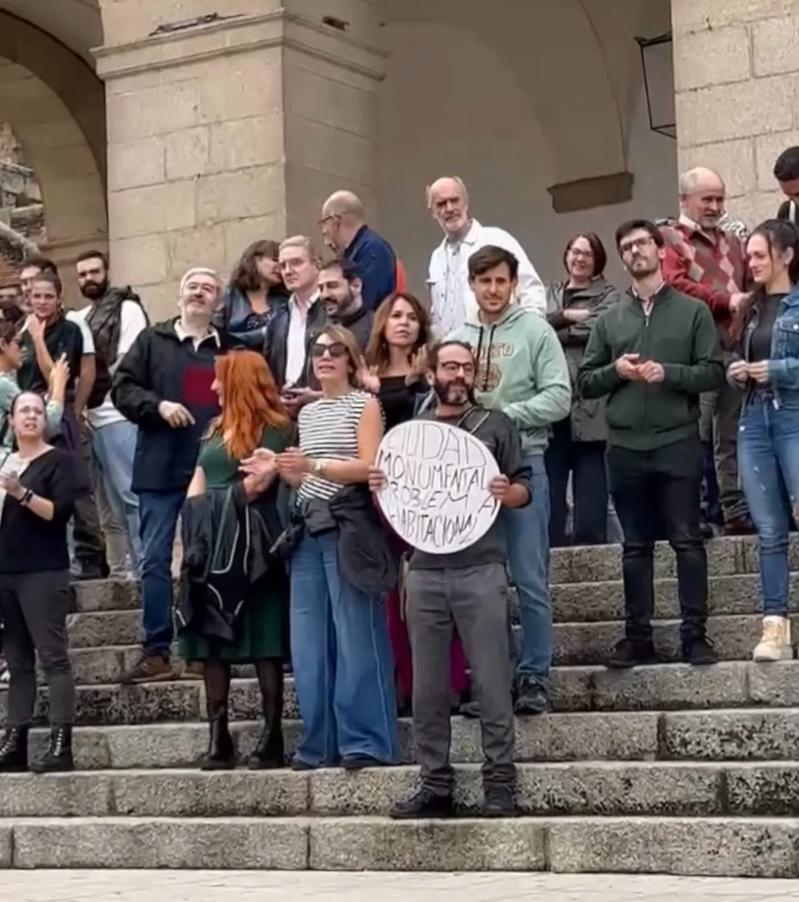 Fernández, junto a varias concejalas y concejales, asistieron ayer a la concentración en la Plaza Mayor para reivindicar una vivienda digna, “consideramos que es necesario actuar de manera urgente, y así lo trasladamos ayer en esta concentración, poniéndonos a disposición de la plataforma para poder trabajar de manera conjunta e impulsar medidas que activen el mercado inmobiliario y que regulen el precio del alquiler en la ciudad”.