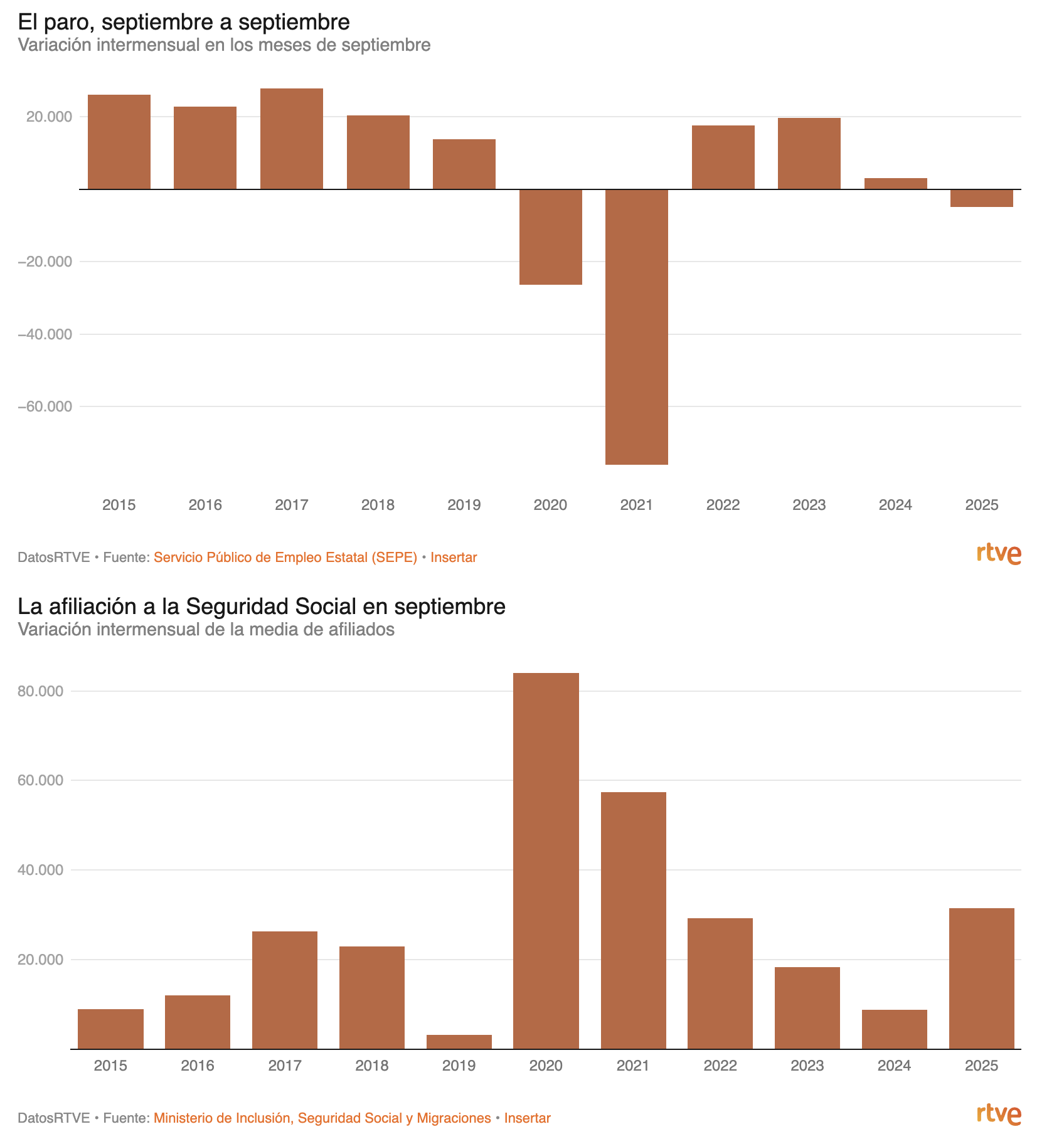 • Solo ha bajado el paro en septiembre en 6 ocasiones: 2005, 2006, 2007 y en la pandemia (2020, 2021), además de este año.