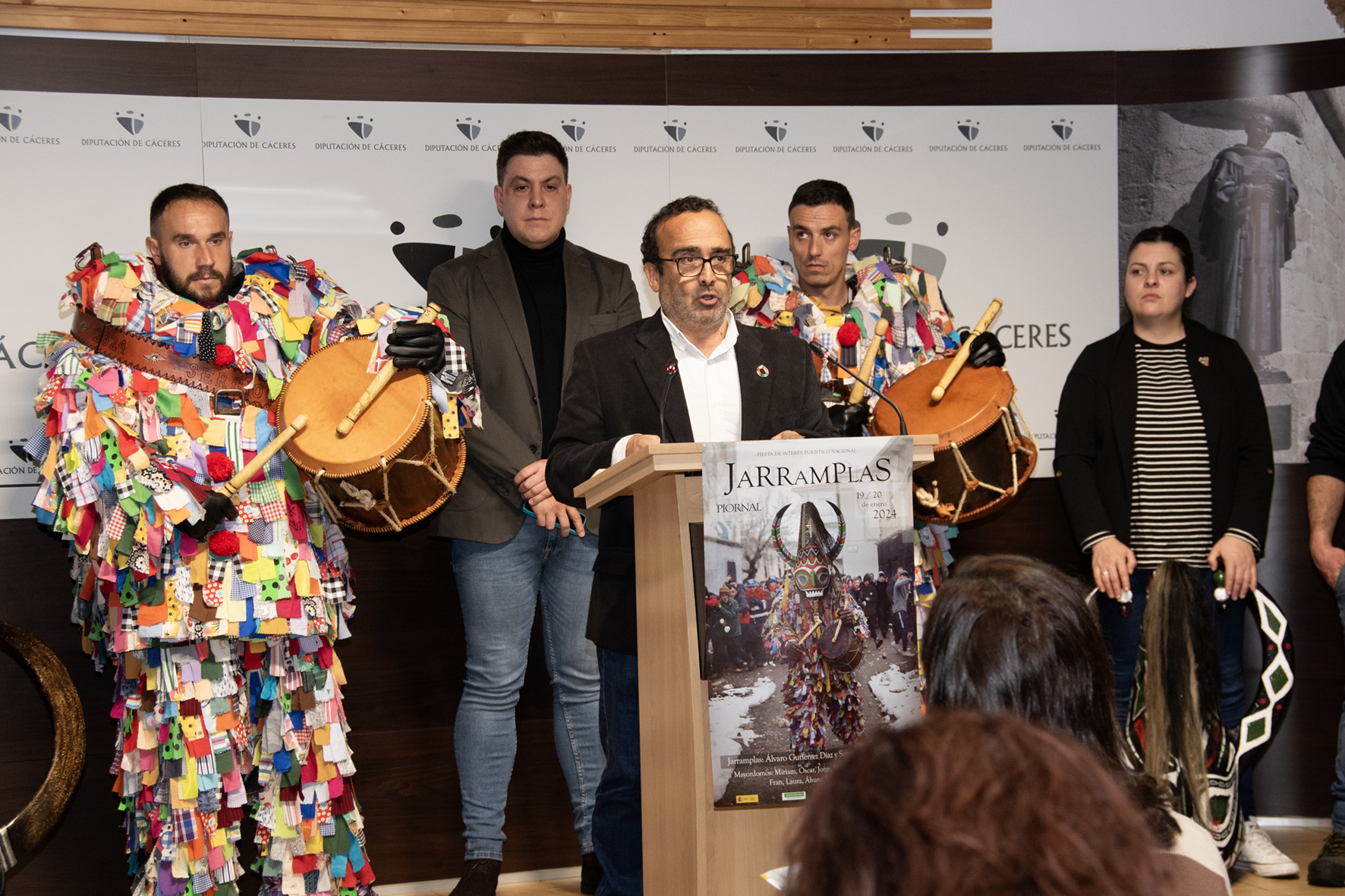 La emoción expresada por Sergio Rodríguez y Álvaro Gutiérrez, además de la de todos y cada uno de los mayordomos y mayordomas, es un claro reflejo de lo que significa esta fiesta, que ha presentado este martes el presidente de la Diputación de Cáceres, Miguel Ángel Morales, junto al alcalde piornalego, Javier Prieto, acompañados de la mayordomía y los dos Jarramplas.