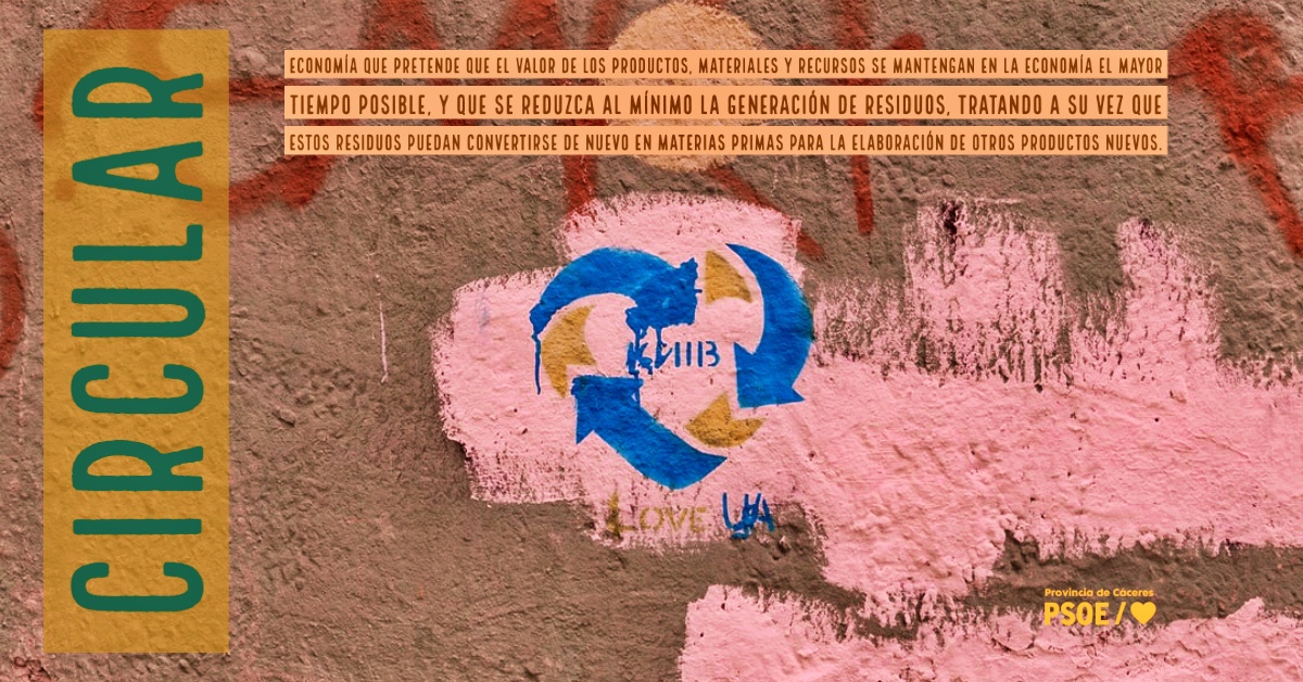 Circular: “dícese de la economía que pretende que el valor de los productos, materiales y recursos se mantengan en la economía el mayor tiempo posible, y que se reduzca al mínimo la generación de residuos, tratando a su vez que estos residuos puedan convertirse de nuevo en materias primas para la elaboración de otros productos nuevos”.
